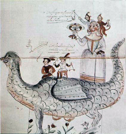 Figura de sierpe, que sacan delante de la Procesión del Corpus, que representa místicamente el vencimiento glorioso de nuestro Señor Jesucristo, por su sagrada muerte, y Pasión del monstruoso Leviatán. Es voz tomada del griego Theracca, que significa amedrentar, porque espanta y amedrenta a los muchachos (…) Para celebrar la fiesta del Corpus en otro pueblo, vecino pocas leguas, enviaron seis grandes y robustos gigantes, dos enanos y la Tarasca.