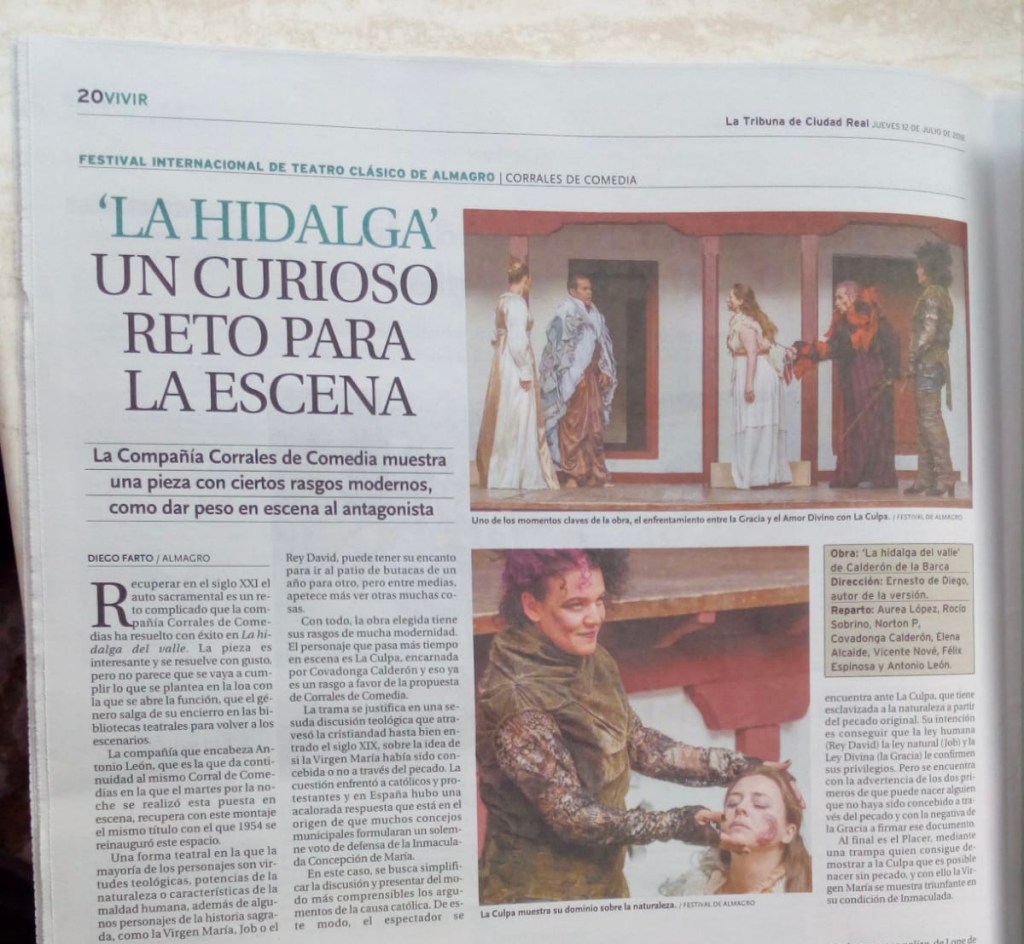Como prometí la semana pasada, para cerrar la trilogía de anécdotas sobre los Autos Sacramentales, os dejo el texto de la Loa que escribí para la Compañía Corrales de Comedias Teatro y que se representa antes de poner en escena el Auto La hidalga del valle de Calderón de la Barca. En esta Loa humanizo al Auto Sacramental y a su padre; el Gran Teatro del Mundo, para que cuenten las vicisitudes y la historia de este peculiar género. Como podéis ver en la foto de la entradilla, yo daba vida al personaje del Auto Sacramental en mi loa.