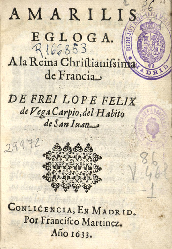 His parents, Félix Vega Carpio and Francisca Fernandez Flores who were natives of the Vega de Carriedo in[5] the Santander Mountain, moved to Valladolid in search of more work. There his father met another woman with whom he became infatuated, as a matter of fact so much that he followed her to Madrid. ¨Blind with jealousy¨, as Lope himself says, Francisca also followed the two of them. (Many specialists say that, in reality, the father moved to Madrid in search of economic possibilities that the new location of the Royal Court[6] offered, and that he left his wife in Valladolid, until he found work.) They met again in Madrid, reconciled and that same night they conceived our prodigy. Lope told these facts in an epistle entitled Amarilis: