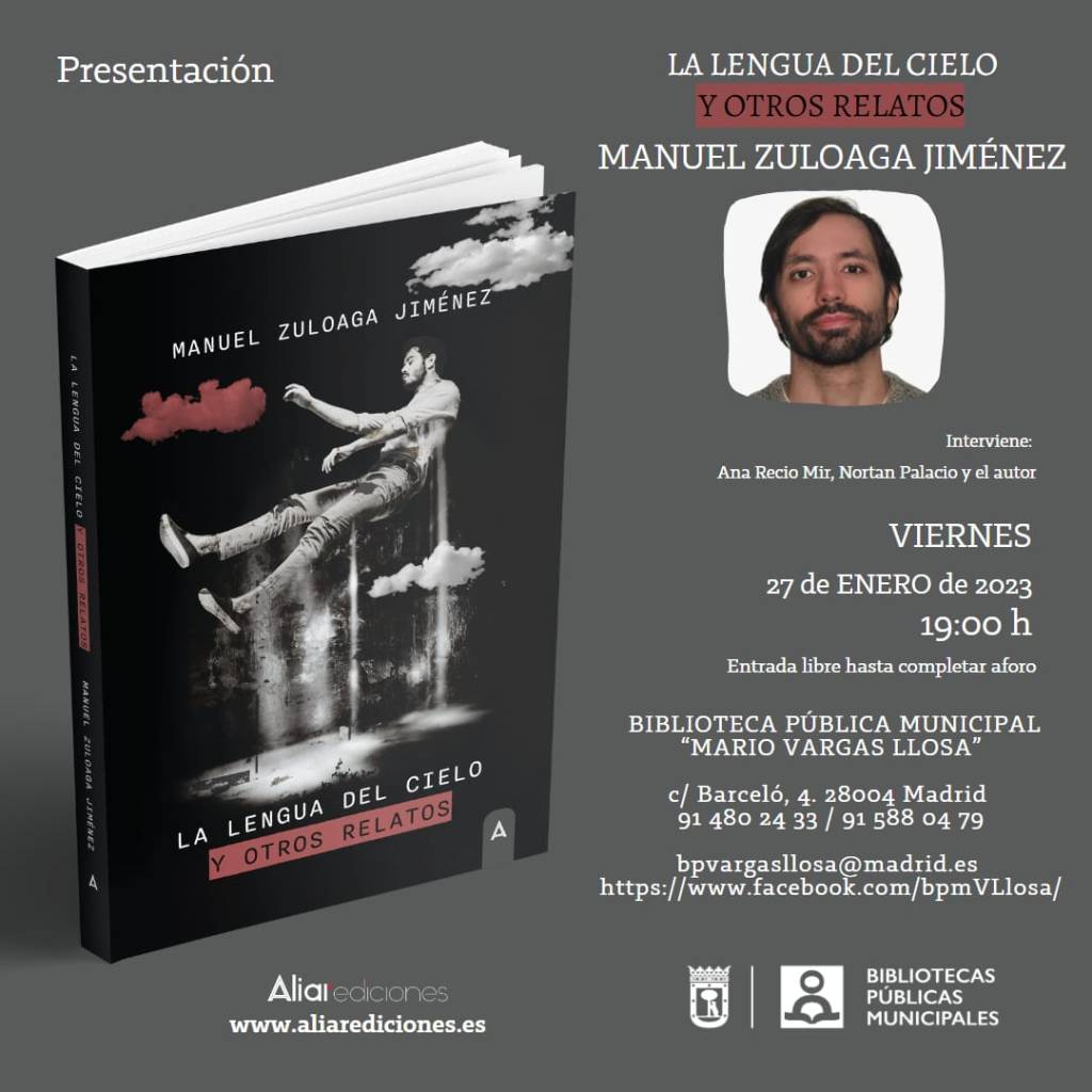 Although of all the excuses for my «no anecdote» the most important, and the one that gives rise to what I will deal with in this short entry, is the edition of the book La lengua del cielo y otros relatos (The language of heaven and other stories), which has published my friend Manuel Zuloaga Jiménez and of which, as I say and you see in the photo, I had the honor to present.