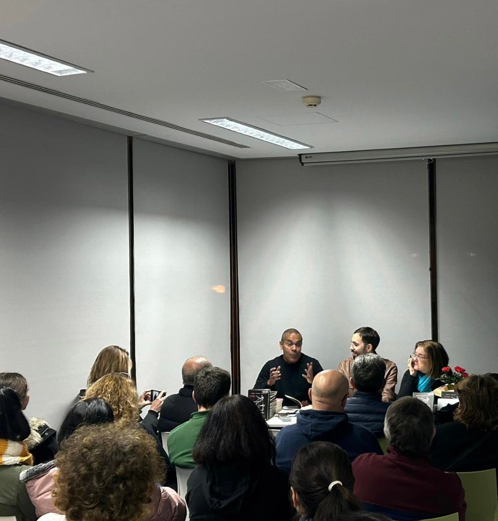 HEME ALLÍ EN LA BIBLIOTECA VARGAS LLOSA DE MADRID, COMO COPRESENTADOR DEL LIBRO LA LENGUA DEL CIELO Y OTOROS RELATOS DE MANUEL ZULOAGA JIMÉNEZ; EN EL CENTRO, EL AUTOR Y A LA DERECHA LA OTRA PRESENTADORA: ANA RECIO MIR. ME THERE IN THE VARGAS LLOSA LIBRARY OF MADRID, AS CO-HOST OF THE BOOK LA LENGUA DEL CIELO Y OTROS RELATOS (THE LANGUAGE OF HEAVEN AND OTHER STORIES) BY MANUEL ZULOAGA JIMÉNEZ; IN THE CENTER, THE AUTHOR AND, TO THE RIGHT THE OTHER PRESENTER: ANA RECIO MIR