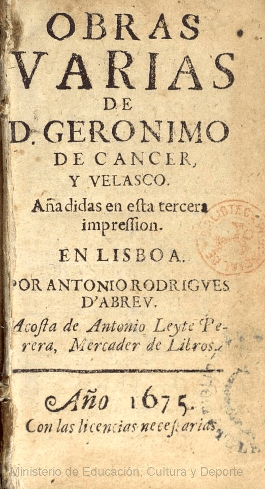 As he was a rather satirical author, he stood out in the so-called burlesque and nonsense comedies, two of these he wrote alone: La muerte de Valdovinos, which is a parody of Lope de Vega’s comedy: El marqués de Mantua, and Las mocedades del Cid, in which Cancer parodies the comedy of the same name written by Guillén de Castro. In these comedies, in addition to using satire adorned with conceptualist tricks, they also carried passages considered lurid at the time, since they even mocked the Virgin Mary and for this they were censured by the Inquisition. But we already know that what was censored attracts attention and that is why these comedies, which he included in a miscellaneous work with other burlesque poems, entitled Obras Varias, were published more than ten times between 1651 and 1761 (a spectacular figure for his time)